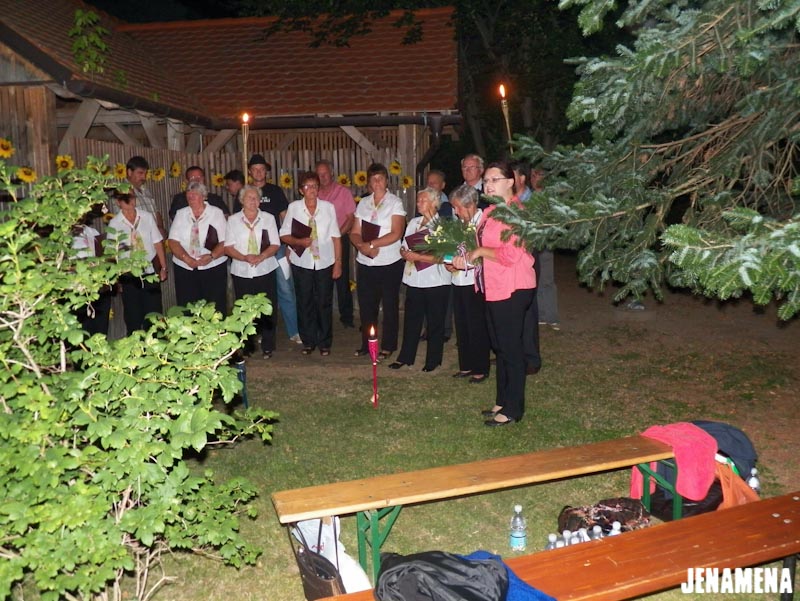 V šolskem parku pri Osnovni šoli Franceta Prešerna Črenšovci smo v idiličnem okolju in v soju bakel lahko prisluhnili domoljubnim pesmim, ki so jih zapele Ljudske pevke upokojenke Kulturno-turističnega društva Črenšovci. V sklopu programa so se jim pridružili Melinčki ciglarji. V sklopu prireditev v počastitev 95-letnice združitve prekmurskih Slovencev z matičnim narodom smo tako domovini poklonili pesem. Pesem srca. Pesem, ki je zapisana v pesmarici Slovenska krajina, mili moj dom … in posneta na istoimenski zgoščenki in so jo posnele Ljudske pevke upokojenke. Vreden dar. In obiskovalci prireditve so ga pozdravili s srčnim aplavzom.
