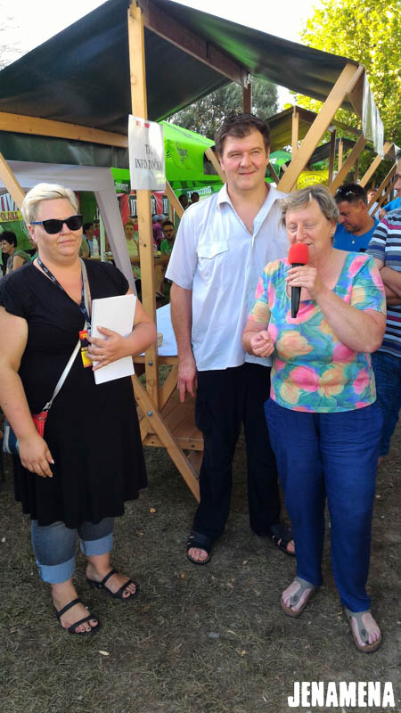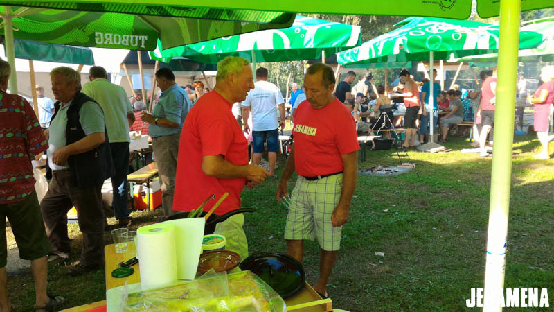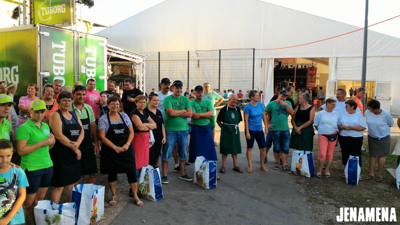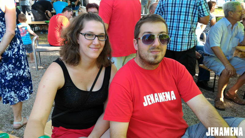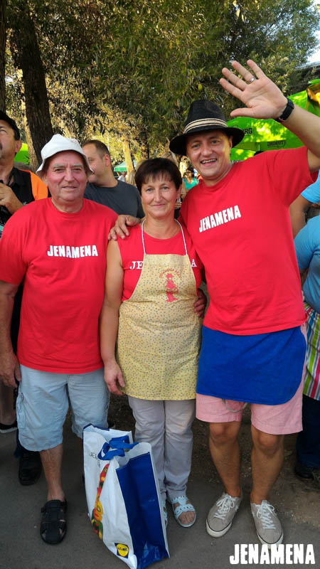 Jenamena kuharska ekipa v sestavi Marija in Martin Hanc kot glavna kuharja in Damijan Hozjan kot kurjač se je v sredo, 3. avgusta 2016, udeležila tekmovanja v kuhanju bujte repe na Pomurskem poletnem festivalu v Veliki Polani. Repa, ki so jo ponudili obiskovalcem, je bila že tradicionalno odlična in jo bo naša kuharska ekipa letos kuhala tudi na Jenamena fest-u. Kuharje je spremljala tudi močna spremljevalna ekipa rdečih jenamena majic. Imeli smo se krasno. Čestitke kuharski ekipi, ki je prejela priznanje za sodelovanje, in hvala vsem, ki ste nas prišli pozdravit in spodbudit na našo stojnico. Se vidimo kmalu na Jenamena festu …