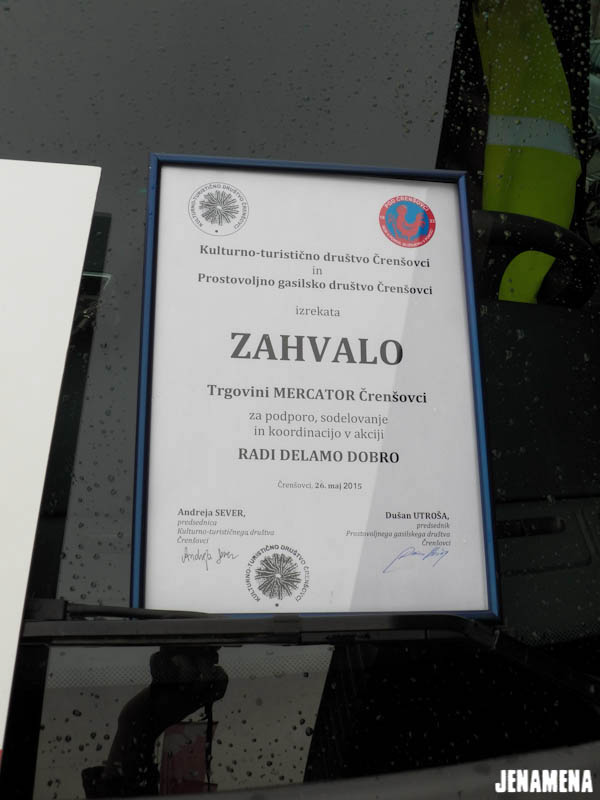 V torek, 26. maja 2015, je pred trgovino Mercator potekala zaključna prireditev v sklopu akcije RADI DELAMO DOBRO. Vodja trgovine, gospod Marjan Bagari, je predal nagrade sodelujočim, in sicer je Prostovoljno gasilsko društvo Črenšovci osvojilo prvo mesto, Kulturno-turistično društvo Črenšovci je osvojilo drugo mesto in s tem vrednostno kartico v višini 200 € in Nogometni klub Črenšovci tretje mesto. Ljudske pevke upokojenke so poskrbele za kulturni del programa, mimoidoči in zbrani pa so se lahko okrepčali.